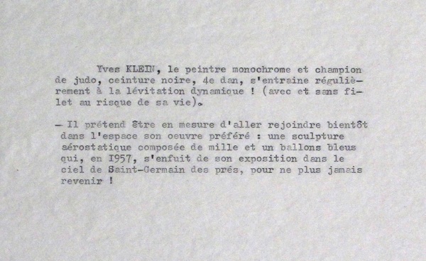 Le saut dans le vide, Yves Klein, Octobre 1960
